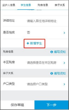 2、如果是多胞胎或多個(gè)孩子滿足6周歲,點(diǎn)擊“新增學(xué)生”,正常填寫信息即可。