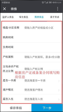 房產(chǎn)所有人必須為適齡兒童的法定監(jiān)護(hù)人(一般為父母),如果您購(gòu)買的新建商品房還未取得產(chǎn)權(quán)證,請(qǐng)?zhí)顚懺谕练烤謧浒傅馁?gòu)房合同編號(hào)。(注:認(rèn)真閱讀下方的購(gòu)房審核事項(xiàng)說明。需要注意的是房產(chǎn)類別必須為“住房”)