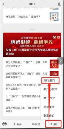 進(jìn)入“i廈門”微信公眾號(hào),點(diǎn)擊菜單欄的“i廈門”,找到“我的i廈門”進(jìn)入登錄頁(yè)面,輸入賬號(hào)、密碼和點(diǎn)擊驗(yàn)證綁定i廈門賬號(hào)登錄,然后關(guān)閉頁(yè)面返回“i廈門”微信公眾號(hào)。