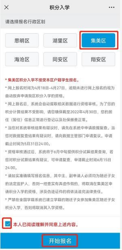 2022 年集美區(qū)積分入學(xué)報(bào)名操作指南(微信端)