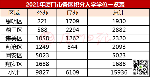 2021年廈門市六個(gè)區(qū)總共提供15936個(gè)學(xué)位,六成是公辦校,具體是:15936個(gè)學(xué)位,其中公辦9827個(gè),占比61%,民辦6109個(gè)。