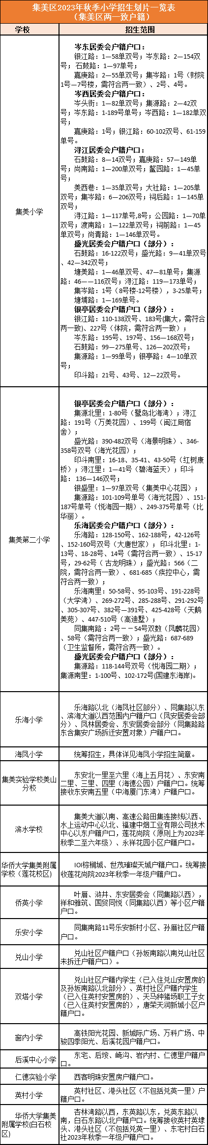 【積分】:廈門積分入學細則 | 【劃片】:小學劃片+對應(yīng)初中 | |