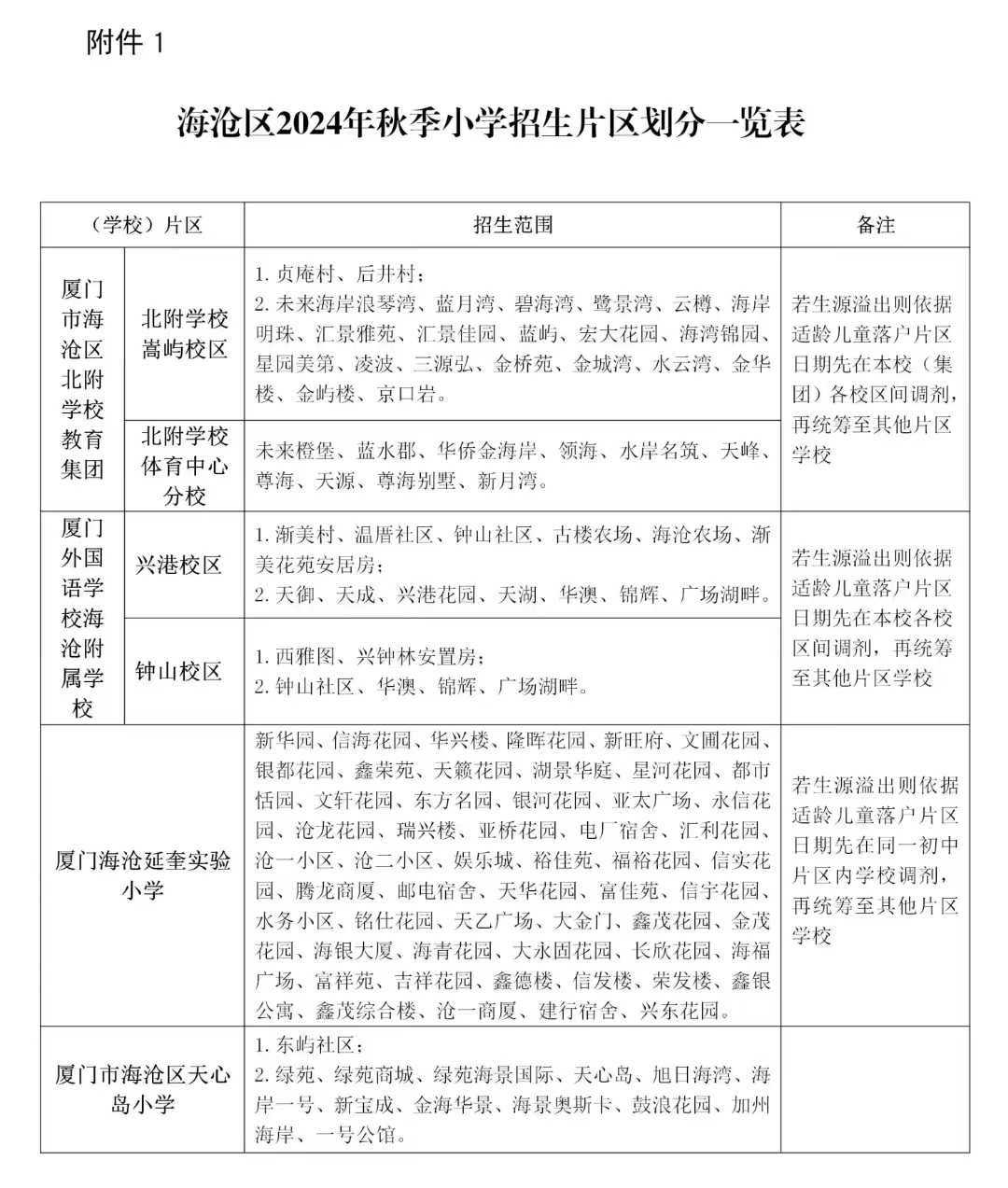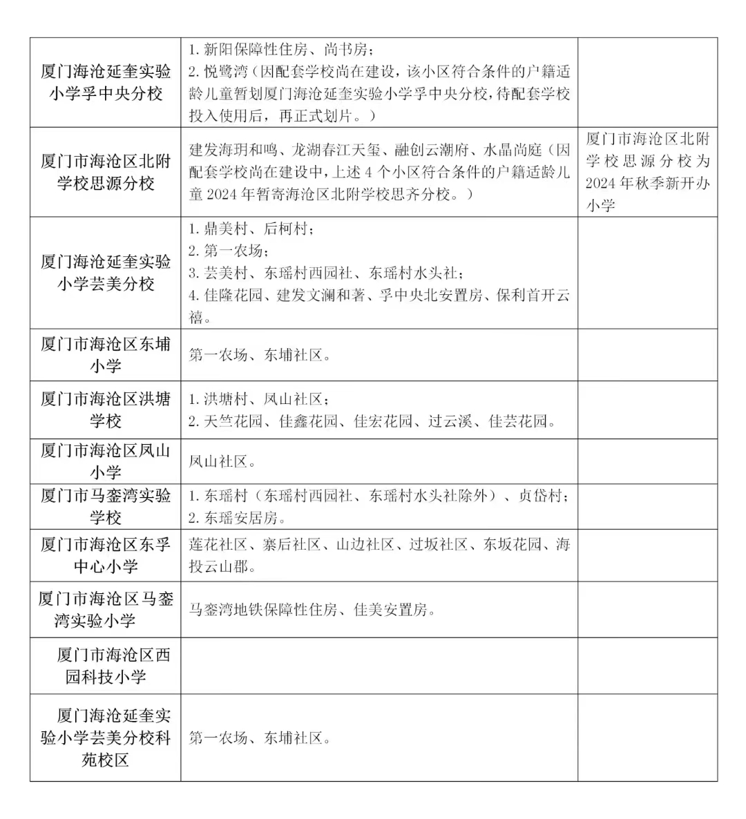備注:海滄區(qū)西園科技小學(xué)片內(nèi)是明年交付的安置房,去年開辦,目前主要是招收集體戶等。