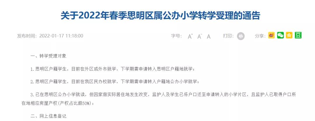 就在剛剛,思明區(qū)教育局發(fā)布《關(guān)于2022年春季思明區(qū)屬公辦小學(xué)轉(zhuǎn)學(xué)受理的通告》!
