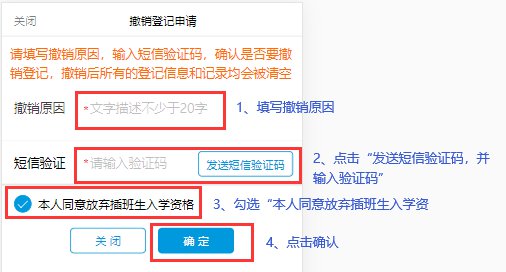 如果要撤銷報(bào)名,點(diǎn)擊“撤銷登記”,須填寫(xiě)撤銷原因。撤銷報(bào)名后,即視為自愿放棄本次轉(zhuǎn)學(xué)申請(qǐng)。