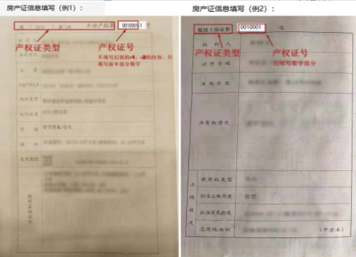 請(qǐng)根據(jù)自己的房產(chǎn)情況認(rèn)真填寫(xiě)信息。產(chǎn)權(quán)證號(hào)的位置如下圖所示: