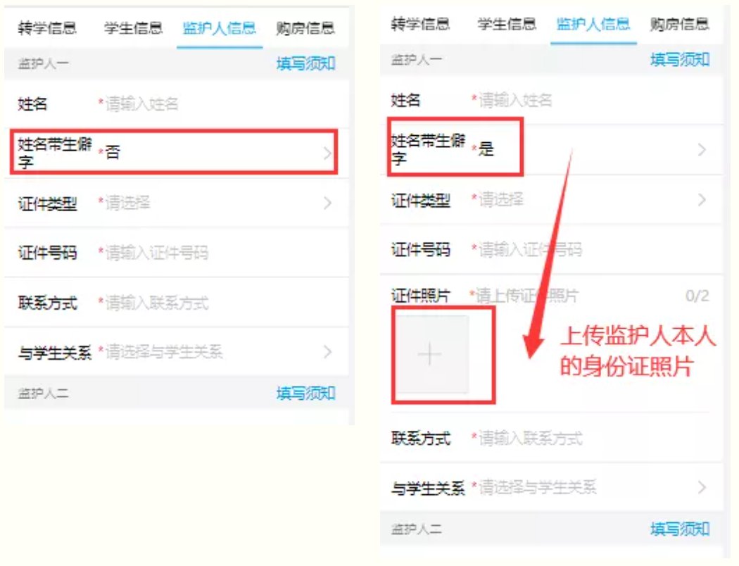 如果監(jiān)護(hù)人姓名帶生僻字,則“姓名帶生僻字”選擇“是”,須上傳本人身份證照片。