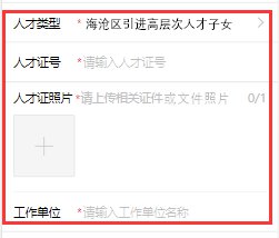 若選擇“海滄引進(jìn)高層次人才子女”類型報(bào)名,家長(zhǎng)須填寫(xiě)人才類型、人才證號(hào)、工作單位,并上傳人才證或相關(guān)文件的照片。