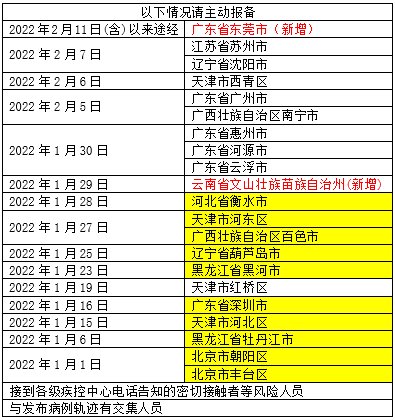 ①請(qǐng)有以下時(shí)段、地區(qū)旅居史的入(返)廈人員,第一時(shí)間主動(dòng)向所在社區(qū)(村)、單位、酒店報(bào)備相關(guān)情況,主動(dòng)配合轄區(qū)做好信息登記、核酸檢測(cè)等防控措施。