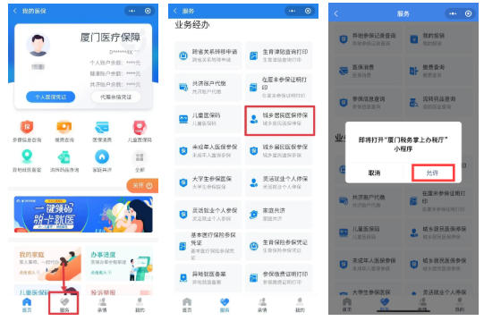 1.打開“廈門醫(yī)療保障”微信公眾號,進(jìn)入【服務(wù)大廳】—【服務(wù)】—【城鄉(xiāng)居民醫(yī)保停保】,允許跳轉(zhuǎn)頁面,根據(jù)系統(tǒng)引導(dǎo)進(jìn)行停保操作。