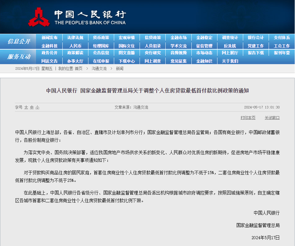 首套住房商業(yè)性個(gè)人住房貸款最低首付款比例調(diào)整為不低于15%,二套住房商業(yè)性個(gè)人住房貸款最低首付款比例調(diào)整為不低于25%。